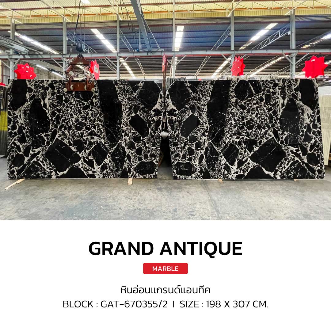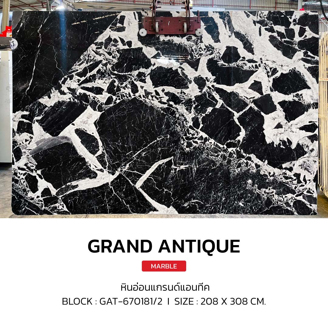 หินอ่อนแกรนด์แอนทีค (Grand Antique Marble) หนึ่งในหินอ่อนหายากที่มีเอกลักษณ์โดดเด่นเฉพาะตัว โดดเด่นด้วยการตัดกันของสีดำเข้มดุจราตรีและเส้นสายสีขาวที่แตกแขนงไปทั่วราวกับสายฟ้าฟาดกลางท้องฟ้า เกิดเป็นความงดงามที่ทรงพลังและเต็มไปด้วยเสน่ห์ลึกลับ หรูหราเหนือกาลเวลาลวดลายที่คมชัดและความตัดกันของสีขาวดำใน Grand Antique มอบความรู้สึกสง่างามและทันสมัยในเวลาเดียวกัน จึงมักถูกเลือกใช้ในงานออกแบบที่ต้องการความโดดเด่น